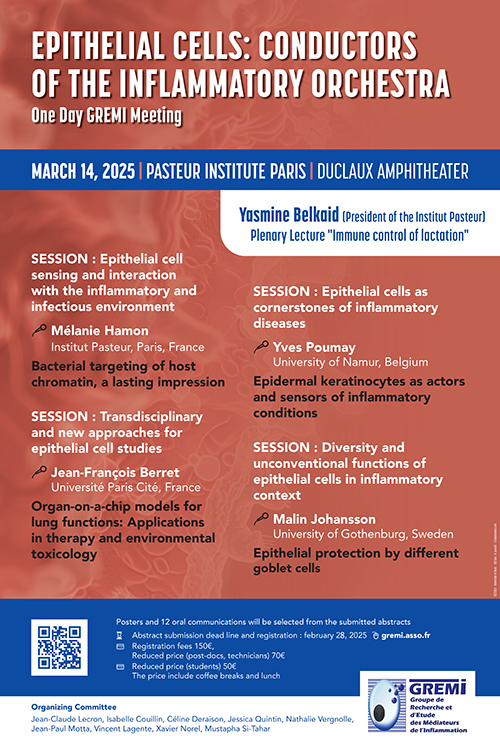 GREMI (Société Française d’Inflammation https://gremi.asso.fr) organise its One-Day International Meeting at Institut Pasteur (14th of March 2025).