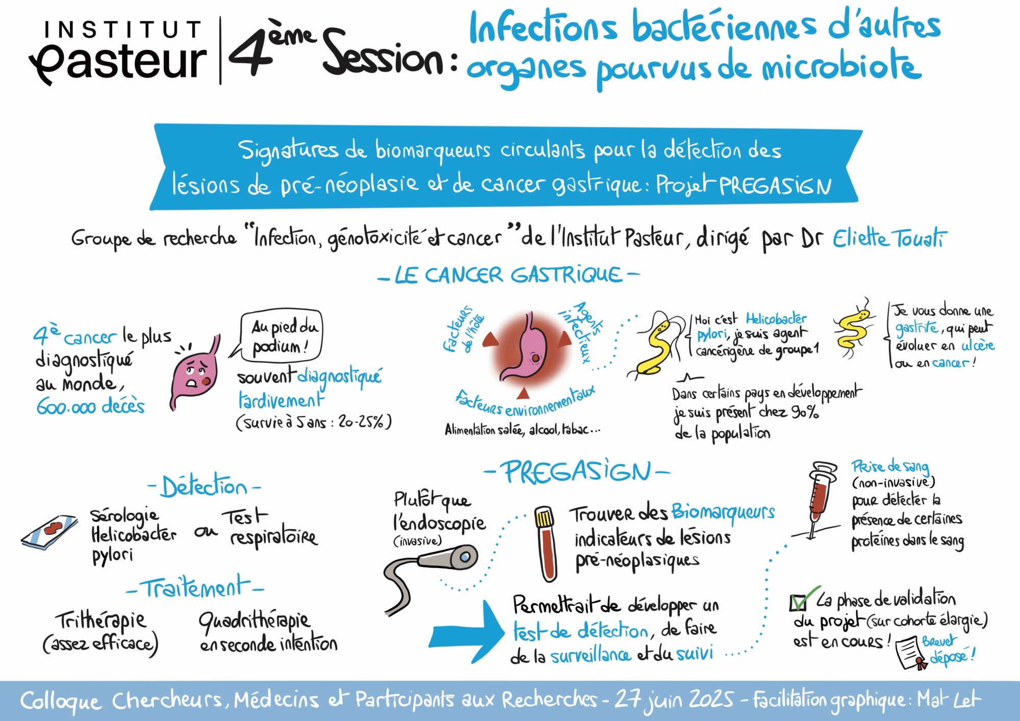 C’est dans ce but que des chercheurs de l’Institut Pasteur, en collaboration avec plusieurs médecins de l’AP-HP, ont identifié au cours d’une précédente étude réalisée sur un nombre restreint de patients, des candidats biomarqueurs qui pourraient permettre de détecter la survenue précoce d’un cancer gastrique.