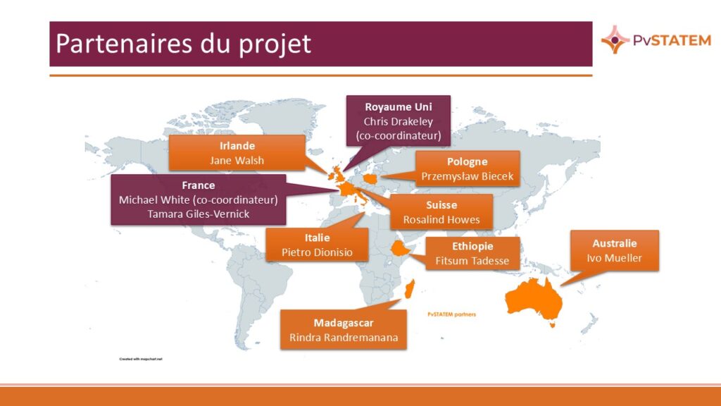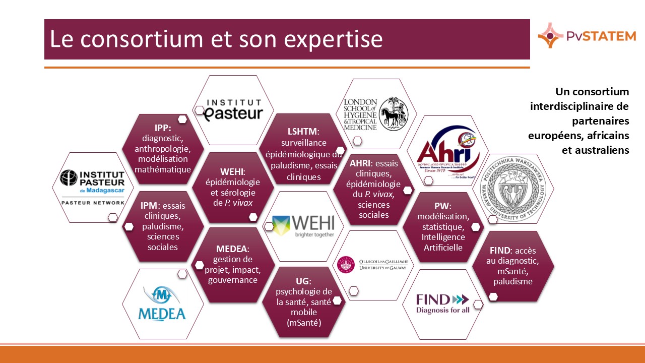 L’objectif global de PvSTATEM est de mettre en œuvre un essai randomisé en clusters en Éthiopie et à Madagascar afin de démontrer l’efficacité d’une nouvelle intervention antipaludique basée sur un test sérologique et le traitement de P. vivax (PvSeroTAT) avec la primaquine pour prévenir les infections de rechute responsables du maintien de la transmission de P. vivax. Le consortium évaluera aussi l’acceptabilité de l’intervention PvSeroTAT par la communauté, innovera en matière de technologies mobiles pour une mise en œuvre efficace du PvSeroTAT (approche mHealth) et développera des approches d’apprentissage automatique pour la surveillance du paludisme au niveau de la population.